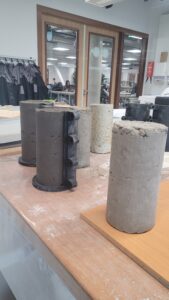 Bij JRCB in Breda ligt de focus op het toepassen van de grondstoffen om functionele materialen te maken. Hier wordt de klei gecombineerd met geselecteerde myceliumsoorten om kleine prototypes en componenten te maken. Verschillende verwerkingsmethoden worden getest, zoals droge versus vochtige klei, en de optimale verhouding tussen mycelium en klei. Neha: “In Breda experimenteren we met verschillende verwerkingsmethodes, zoals droge versus vochtige klei, en onderzoeken we welke verhouding tussen klei en mycelium zorgt voor een optimale groei en binding. Ons doel is een protocol te ontwikkelen voor toekomstige studenten en onderzoekers. Zo kunnen ze voortbouwen op ons werk en bijdragen aan schaalbare, duurzame materialen.”